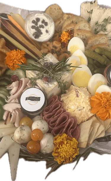 We invite you to explore the enchanting world of charcuterie through our customized boards, where the vibrant colors of artisanal cheeses meet the rich flavors of cured meats, complemented by an array of seasonal fruits, nuts, and pickled delights. Each board we create is a personalized masterpiece that is created to balance flavors, incorporate seasonal ingredients, and even demystify the selection of the perfect accompaniments. Whether you are a seasoned entertainer or a novice looking to impress colleagues or family and friends, our charcuterie boards will inspire and empower you to elevate your gatherings, foster connections over sumptuous bites, and create lasting memories through the shared experience of good food. Please inquire about holiday, southern, brunch, dessert, and celebration stylistic selections.